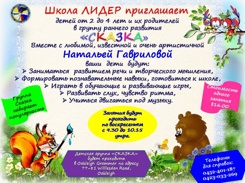 Развивающая студия “Сказка” для детей от 2 до 4 лет